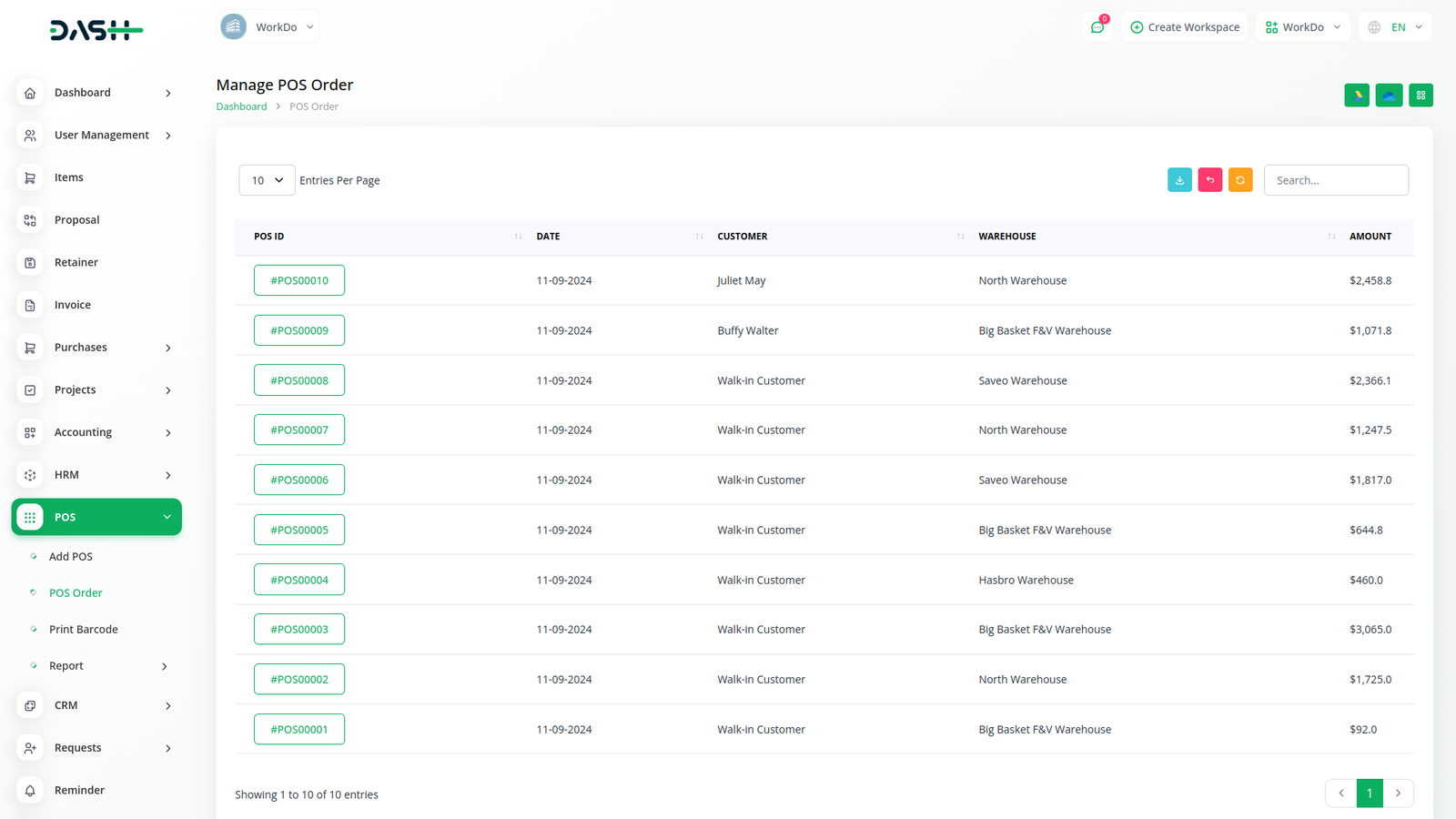 Welcome to the POS Module in Dash SaaS, your ultimate solution for streamlined sales management. Our platform offers a user-friendly dashboard where you can easily navigate through your sales activities. At the heart of the dashboard is a dynamic chart representing your sales reports, providing valuable insights into your business is performance. Whether you are a small retail store or a bustling restaurant, our POS Module empowers you to efficiently manage your sales process from start to finish.